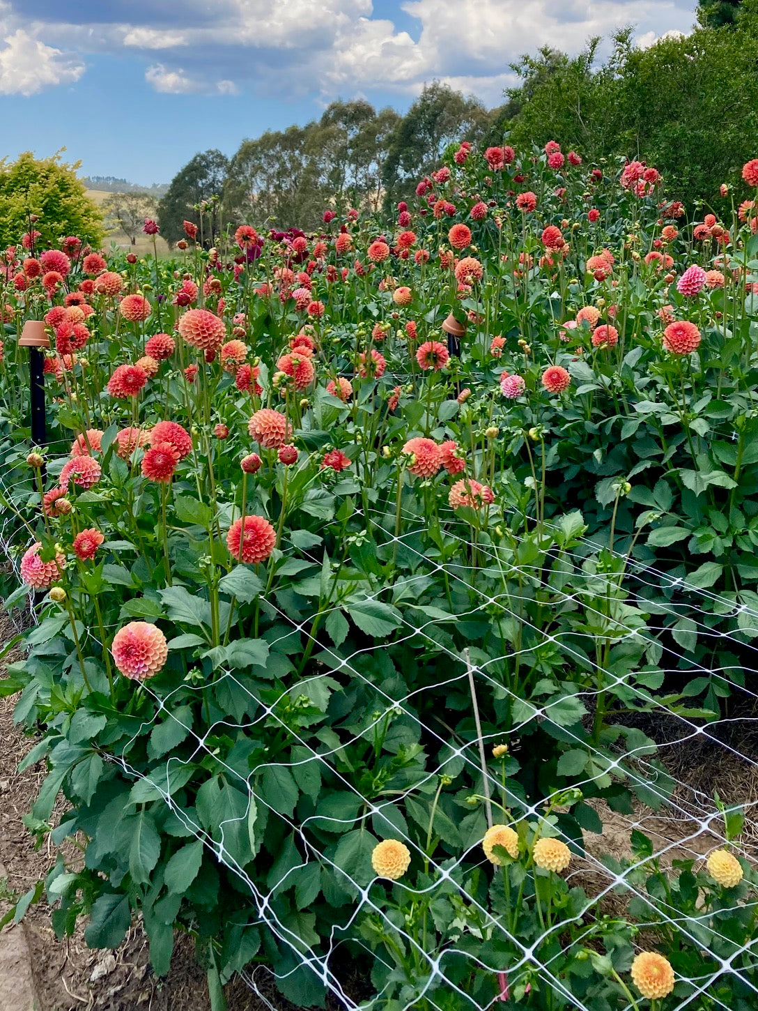 The farm bloomed after we ran out of space to grow more dahlias in our backyard. An opportunity to use a family-owned paddock (once a thriving vegetable patch) saw us transform the perfect slope into a sea of colour.
