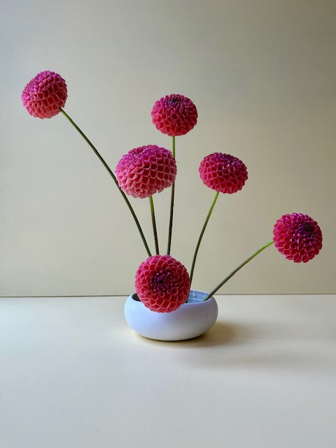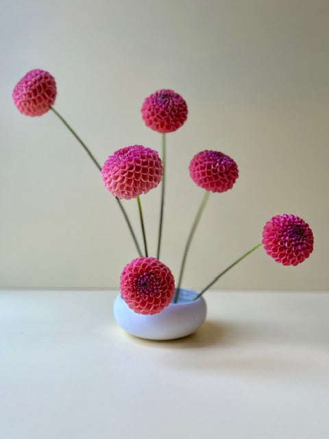 This gorgeous bigger pompon variety will steal your heart with her colour and mass production of blooms. Varying from hot pink in the early season to a lighter blush closer to Autumn. Little Peaches blooms grow on long, strong stems.